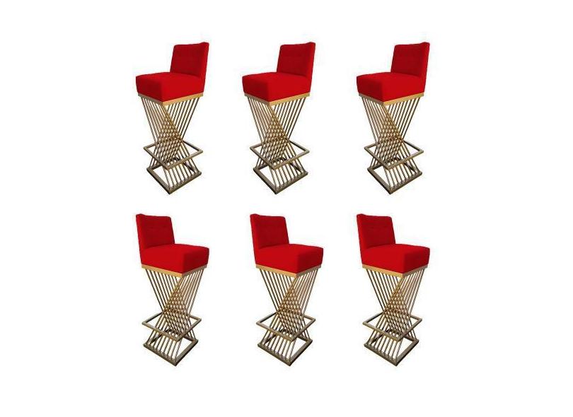 O menor preço encontrado no Brasil para Kit 06 Banquetas Luma Base de Ferro Sued Vermelho - D'Classe Decor atualmente é R$ 3.236,31.