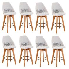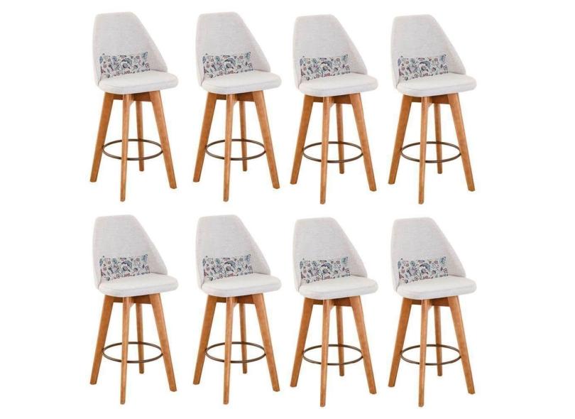 Kit 08 Banquetas Bege Claro E Almofada Flores