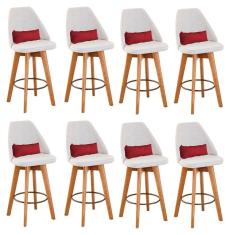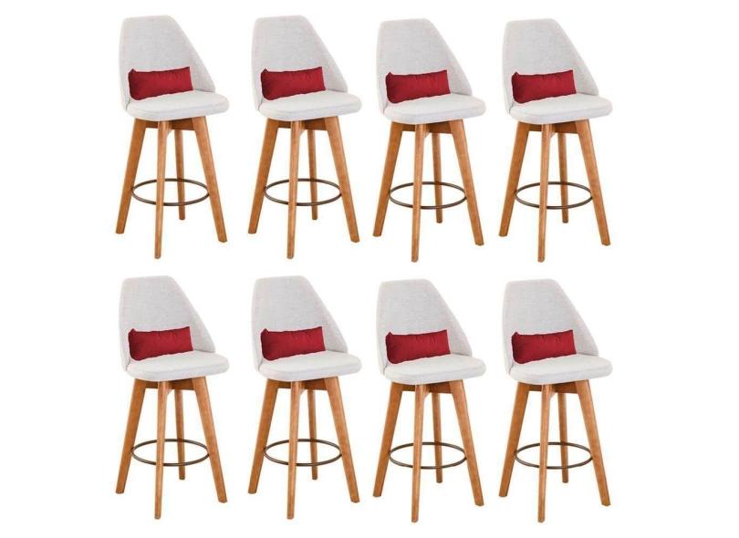 Kit 08 Banquetas Bege Claro E Almofada Sintético Vermelho