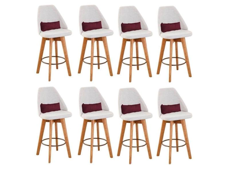 Kit 08 Banquetas Bege Claro E Almofada Suede Bordô