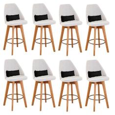 Kit 08 Banquetas Linho Bege E Almofada Preto