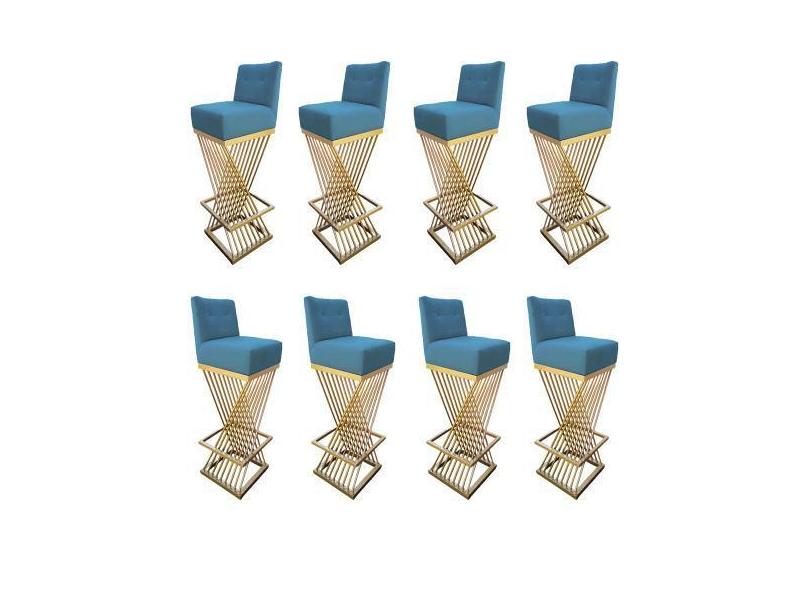 Kit 08 Banquetas Luma Base de Ferro Sued Azul Tiffany - D'Classe Decor