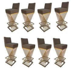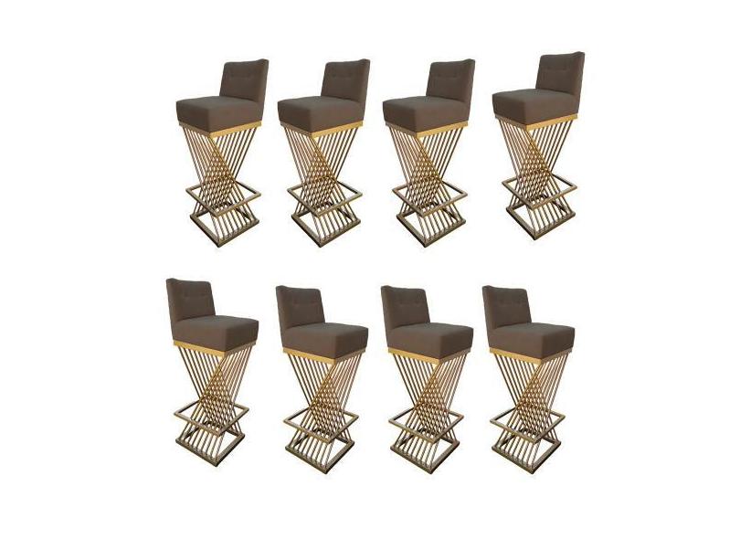 Kit 08 Banquetas Luma Base de Ferro Sued Marrom Rato - D'Classe Decor