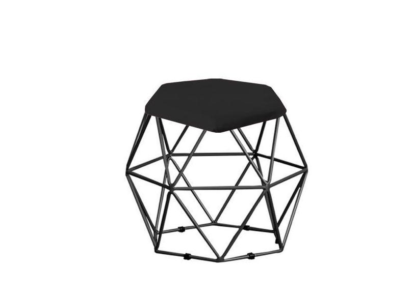 Kit 09 Puff Banqueta Aramado Mila Base Preta Hexágono Suede Preto - KD