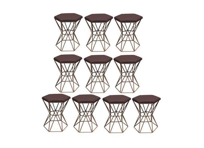 Kit 10 Puff Banqueta Louis Industrial Para Penteadeira Sala Hexágono F