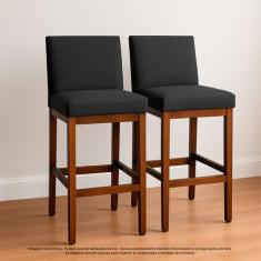 Kit 2 Banqueta Alta Estofada Cozinha Bancada Bistrô Tecido Linho Madei