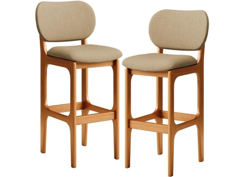 Kit 2 Banquetas Alta Betta Imbuia Linho Bege Escuro