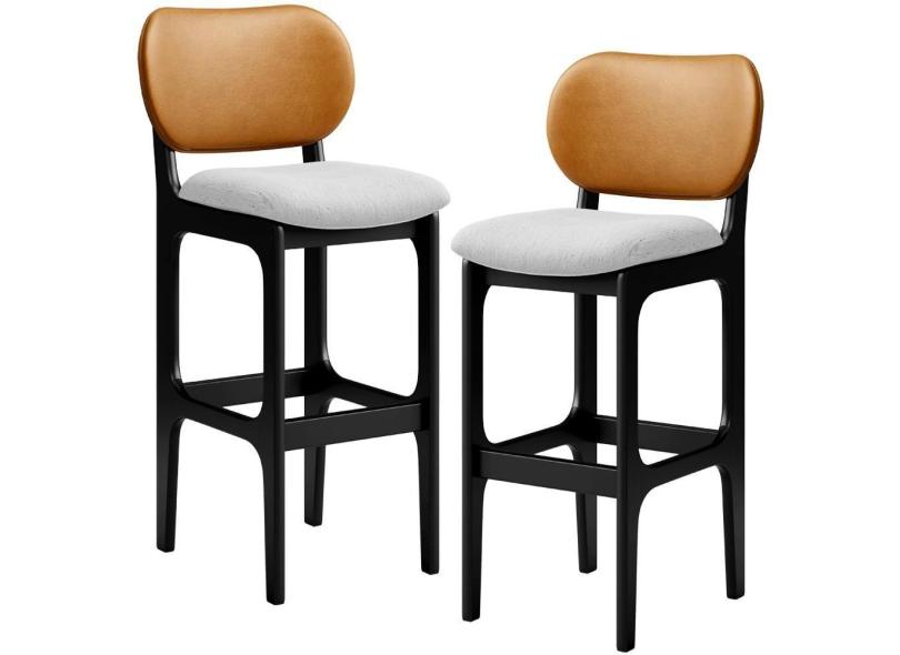 Kit 2 Banquetas Alta Betta Preto Whisky Linho Cinza