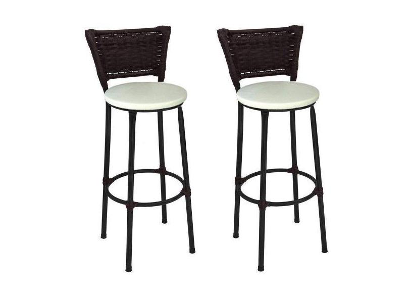 Kit 2 Banquetas Alta Preta Junco Argila com Assento Branco Fortmix