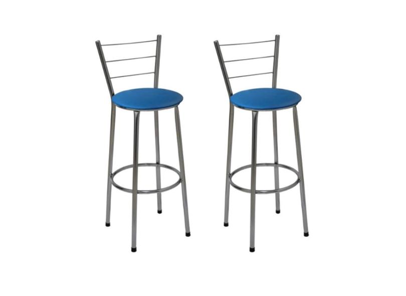 Kit 2 Banquetas Altas Cromada com Encosto Assento Azul