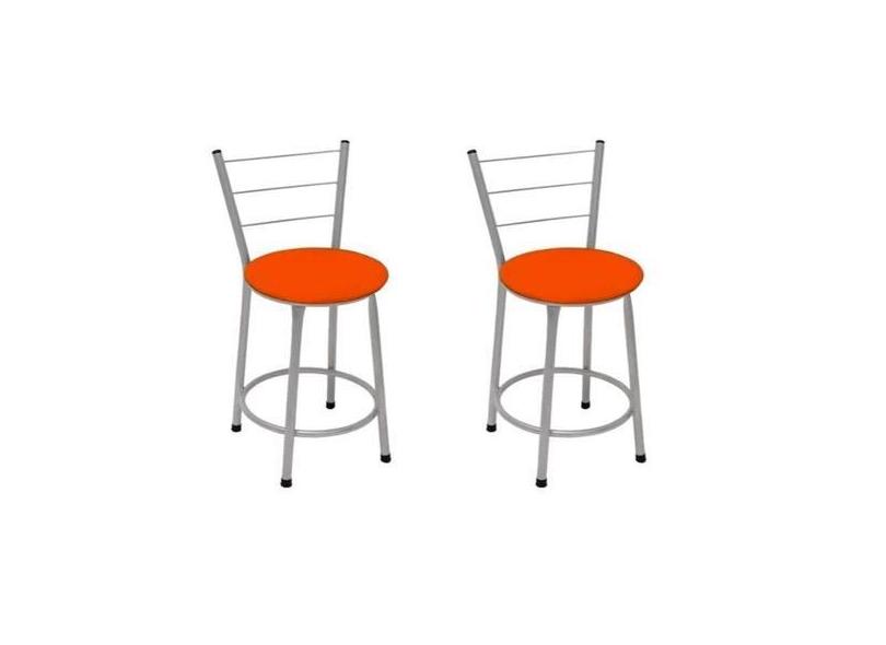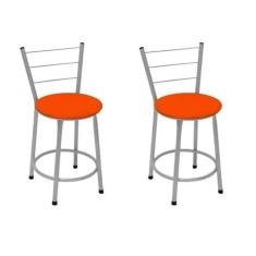 Kit 2 Banquetas Baixa Prata Com Assento Laranja Fortmix