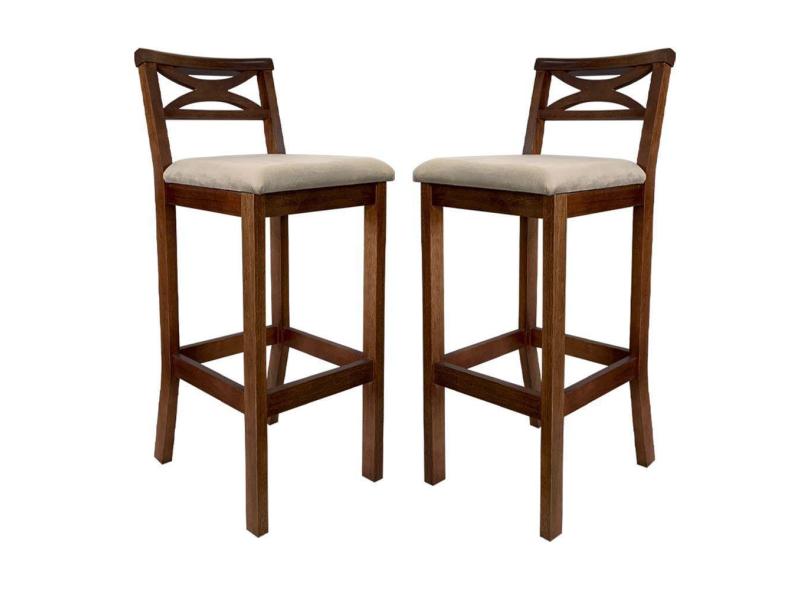 Kit 2 Banquetas de Madeira para Bancada de Cozinha Suede Bege