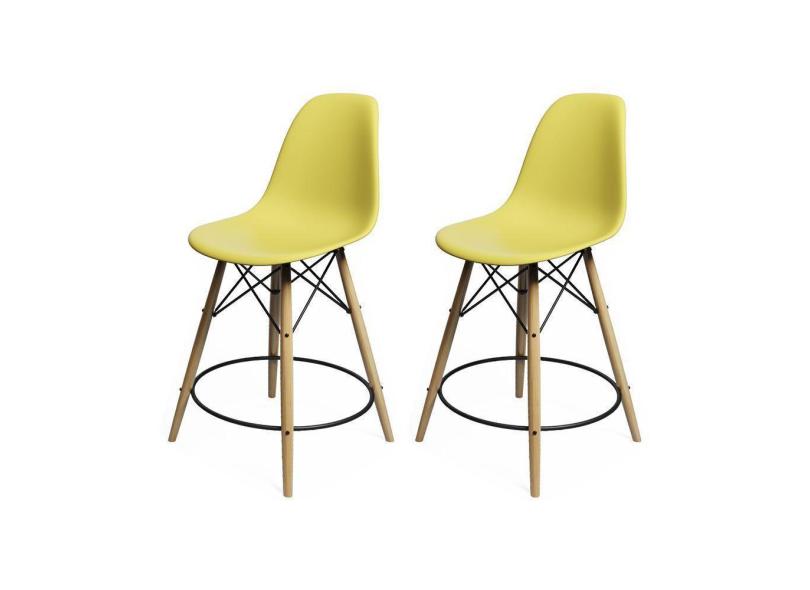 O menor preço encontrado no Brasil para Kit 2 Banquetas Eames Eiffel De Madeira Assento Amarelo - Cor: Amarelo atualmente é R$ 612,48.