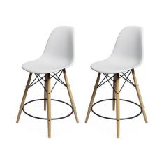 Kit 2 Banquetas Eames Eiffel De Madeira Assento Branco - Cor: Branco