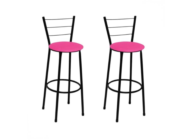Kit 2 Banquetas Médias Preta com Encosto Assento Rosa