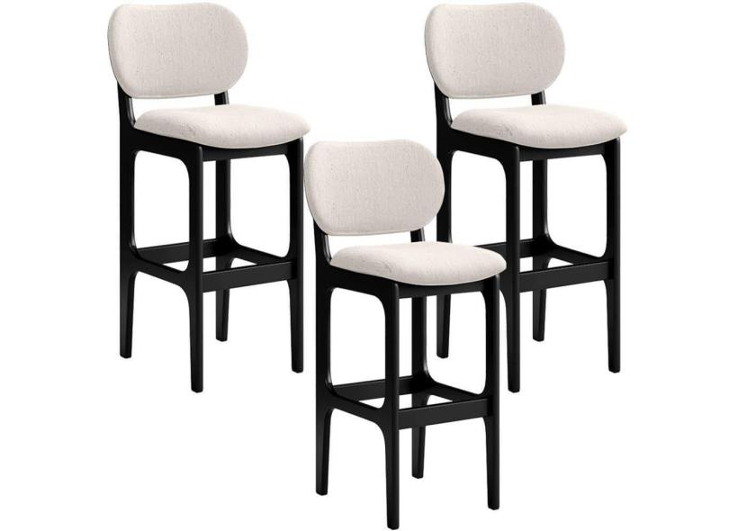 Kit 3 Banquetas Alta Betta Preto Linho Cru