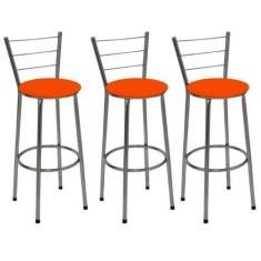 Kit 3 Banquetas Alta Cromada Com Assento Laranja Fortmix