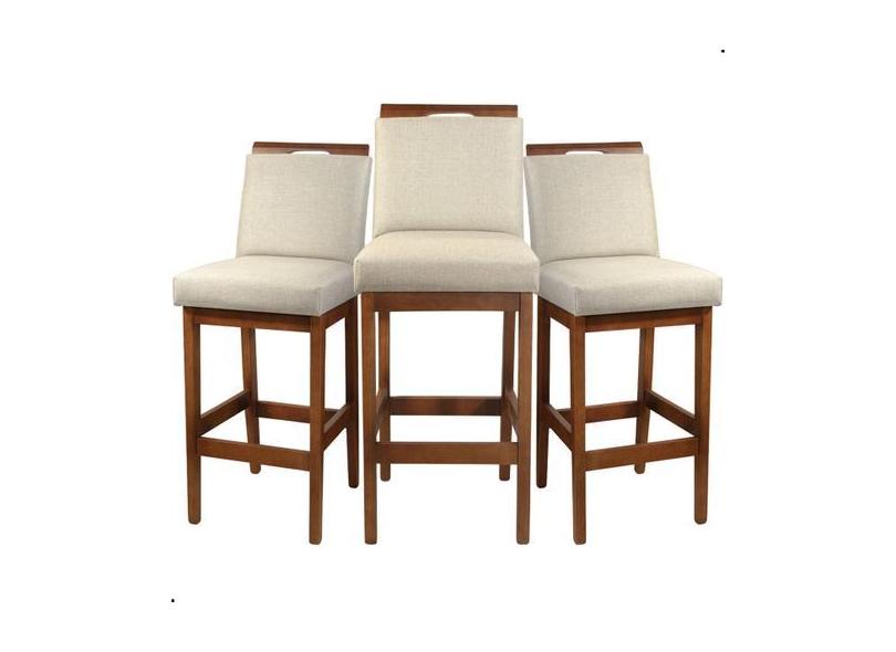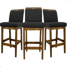 Kit 3 Banquetas Alta Rubi Estofada Tecido Linho Base Madeira Maciça Ca