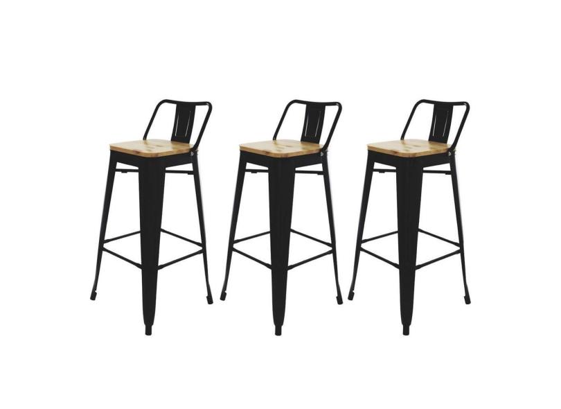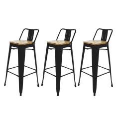 Kit 3 Banquetas Altas Com Assento De Madeira Preta Madeira