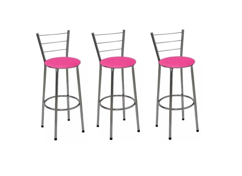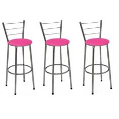 Kit 3 Banquetas Altas Cromada com Encosto Assento Rosa