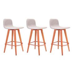 Kit 3 Banquetas Baixa Linea Aço Cobre Assento Cinza