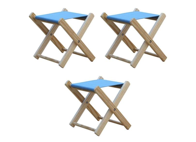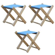 Kit 3 Banquinho De Madeira Banqueta Pescador-azul Claro