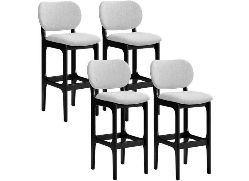 Kit 4 Banquetas Alta Betta Preto Linho Cinza
