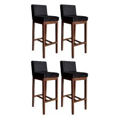 Kit 4 Banquetas Alta com Encosto Estofado Lisboa Madeira Maciça Suede Preto CCS