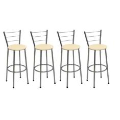 Kit 4 Banquetas Alta Cromada Com Assento Bege Fortmix
