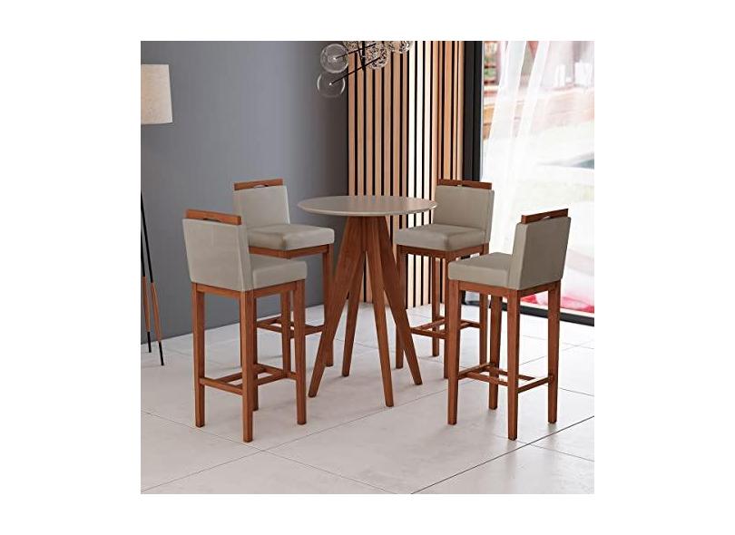 Kit 4 Banquetas Alta Estofadas + Mesa Bar Madeira Maciça Suede Bege CCS