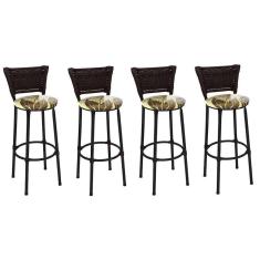 Kit 4 Banquetas Altas Preta com Encosto Junco Argila Assento Floral Marrom