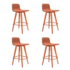Kit 4 Banquetas Baixa Linea Aço Cobre Assento Terracota