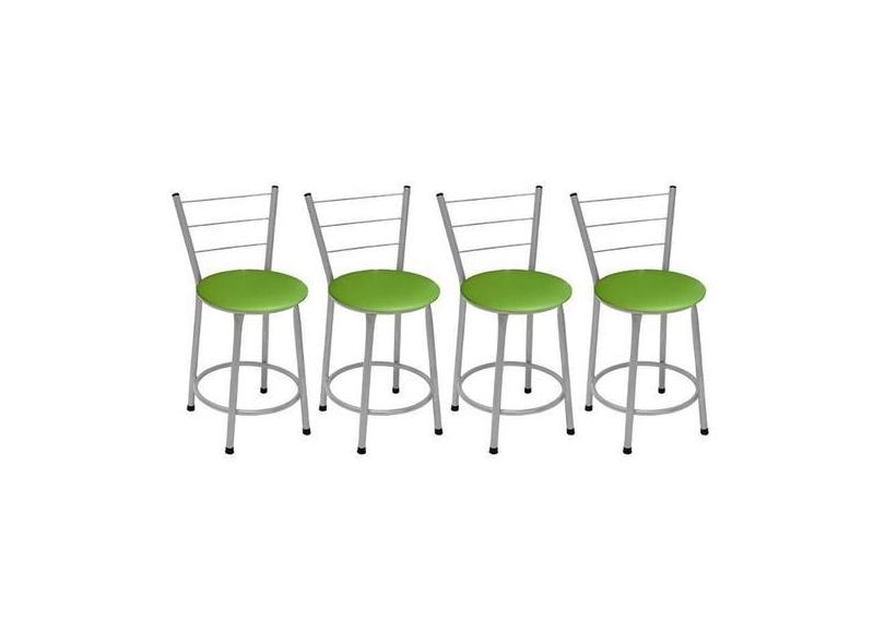Kit 4 Banquetas Baixa Prata com Assento Verde Fortmix