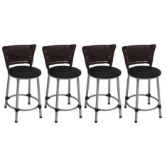 Kit 4 Banquetas Baixa Prata Junco Argila com Assento Preto Fortmix