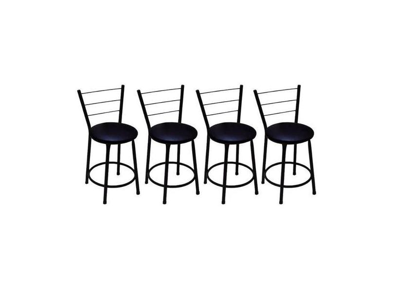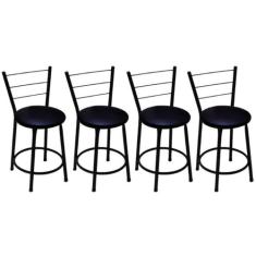 Kit 4 Banquetas Baixa Preta com Assento Preto Fortmix