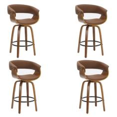 Kit 4 Banquetas Betim Base Madeira Marrom - Rivatti