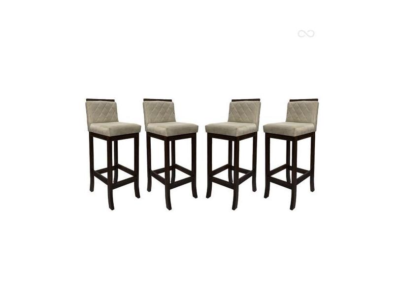 Kit 4 Banquetas Média de Madeira Maciça Nice com Encosto Matelassê Sue