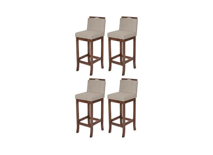 Kit 4 Banquetas Média Estofada Turim Madeira Capuccino Suede CCS - CCS