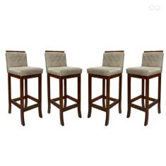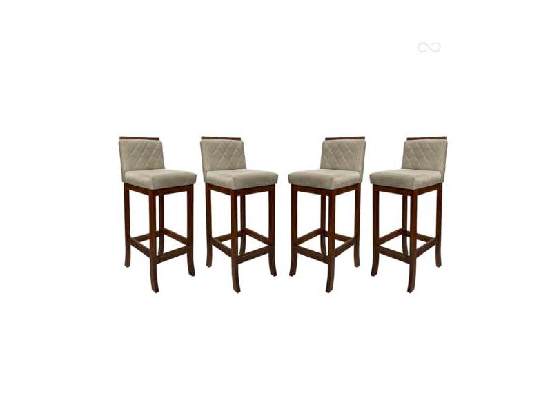 Kit 4 Banquetas Média para Cozinha Nice Madeira Matelassê Suede Bege CCS