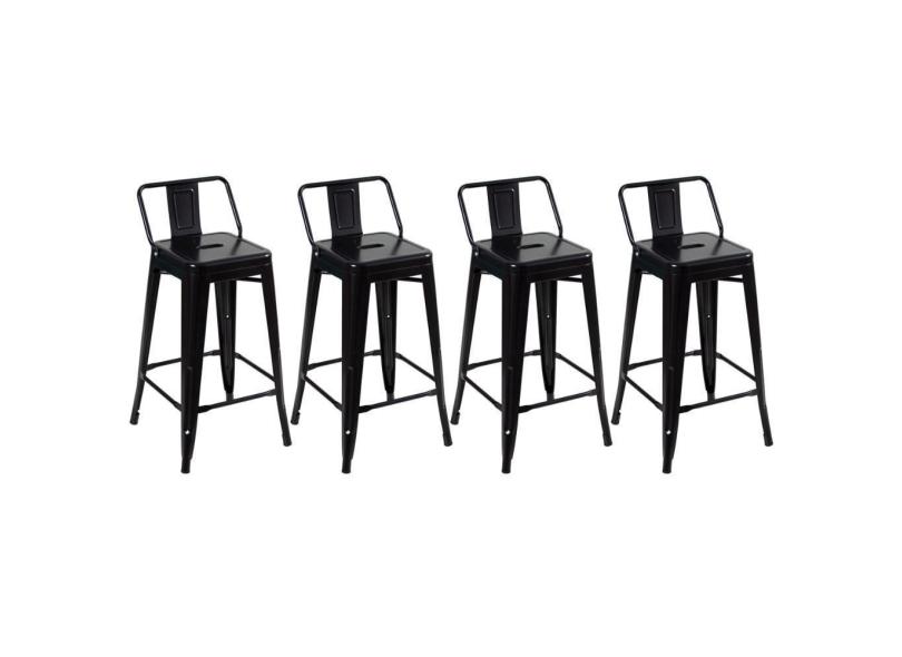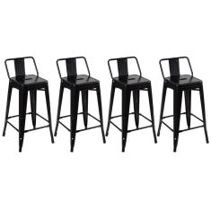 Kit 4 Banquetas Médias Iron Tolix Com Encosto 66cm Preto