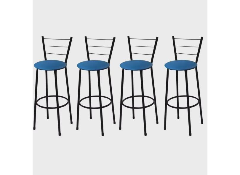 O menor preço encontrado no Brasil para Kit 4 Banquetas Médias Preta com Encosto Assento Azul atualmente é R$ 347,79.
