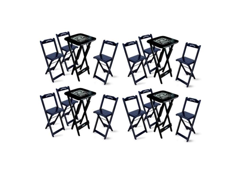 O menor preço encontrado no Brasil para Kit 4 Conjuntos De Mesa Bistrô Dobrável Jack Daniel`s Com 3 Banquetas De Madeira Preta - Cor: Preto atualmente é R$ 2.386,53.