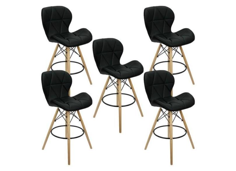 Kit 5 Banquetas Slim Eiffel Wood Estofada - Preto