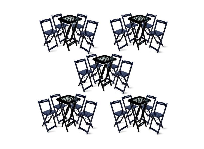 O menor preço encontrado no Brasil para Kit 5 Conjuntos De Mesa Bistrô Dobrável Jack Daniel`s Com 4 Banquetas De Madeira Preta - Cor: Preto atualmente é R$ 3.711,60.