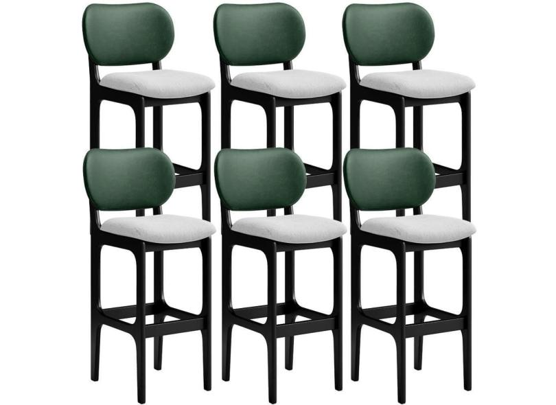 Kit 6 Banquetas Alta Betta Preto Facto Verde Linho Cinza