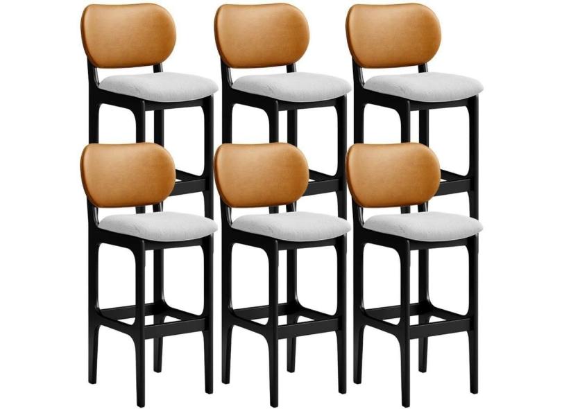 Kit 6 Banquetas Alta Betta Preto Whisky Linho Cinza
