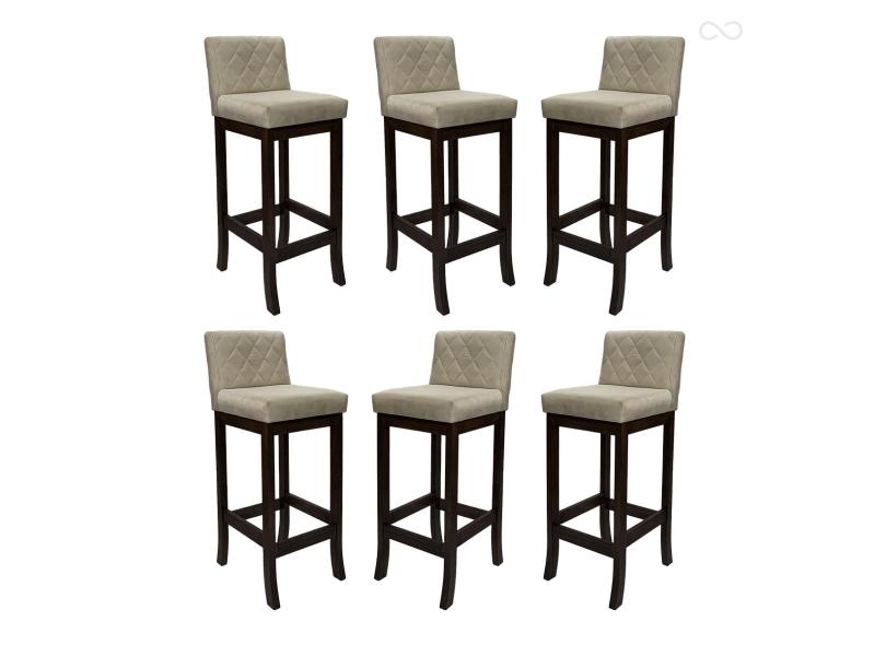 O menor preço encontrado no Brasil para Kit 6 Banquetas Média de Madeira Maciça Tóquio com Encosto Matelassê Suede Bege CCS atualmente é R$ 2.443,35.