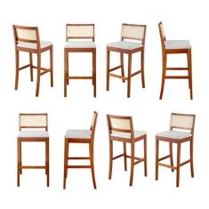 O menor preço encontrado no Brasil para Kit 8 Banquetas com Encosto e Apoio para Pés Tiê Cabecasa Madeiramadei atualmente é R$ 4.743,36.