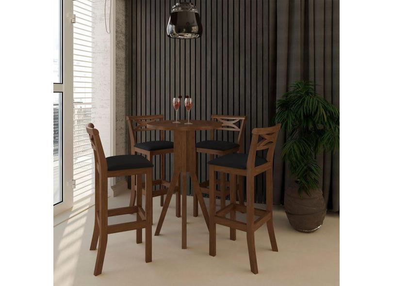 Kit Bar Bistrô Mesa Retrô 4 Banquetas Alta X Madri Madeira Maciça Pinhão Suede Preto