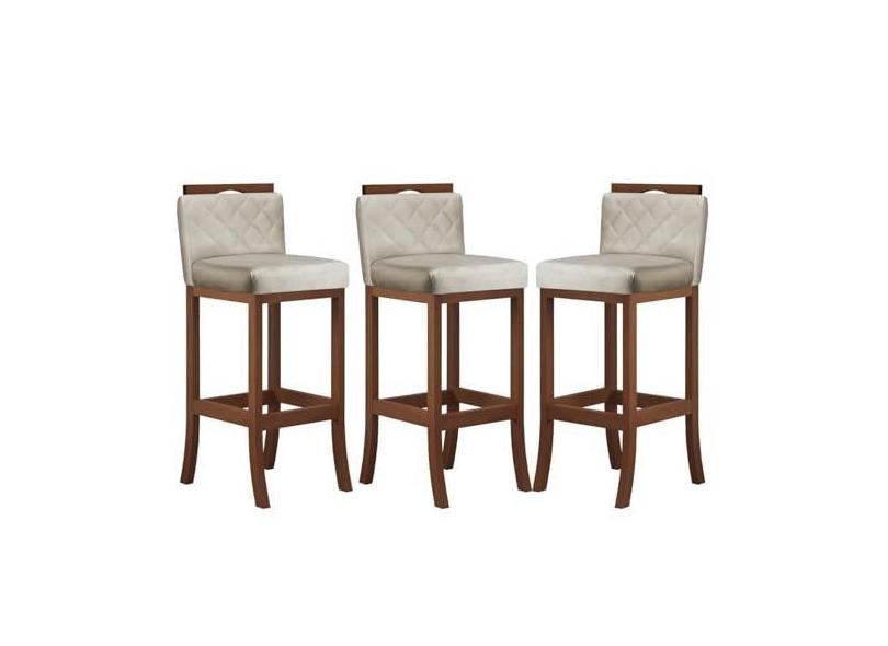 Kit com 3 Banquetas Alta com Matelassê Pinhão